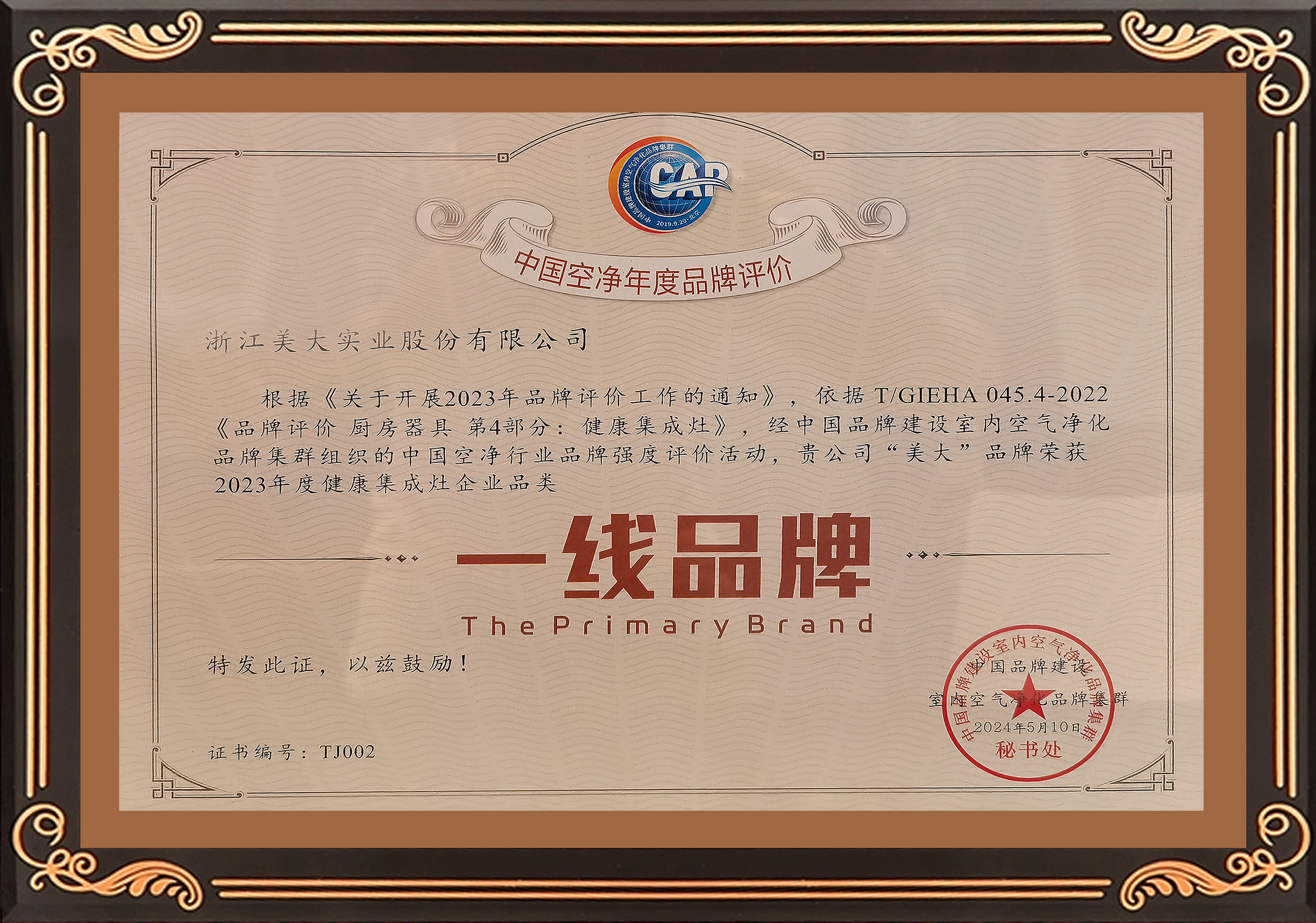 2024年6月19日,“美好生活·健康家”2024第二届健康人居公益发展大会暨广东省室内环境卫生行业协会成立15周年庆典活动在广州白云国际会议中心成功召开。在本次会议上,美大荣膺“健康人居卓越品牌”和2023年度健康集成灶企业品类“一线品牌”称号。